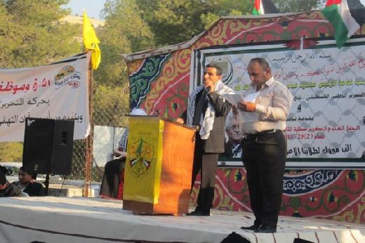 د.(محمد الحروب) امين سر اقليم شمال الخليل بكلمته أشاد بجهود الحركة بالمنطقة وجهودها المتواصلة بما به مصلحة للوطن والمواطن ووجه رسالة للطلاب مفادها أن الحركة ستقف لجانبهم بجميع المرافق وأكد ان الحركة لن تتوانى لحظة عن العمل لانهاء ملف ألأسرى وتحريرهم جميعا وعلى الصعيد السياسي العام أكد أن الحركة وبقيادة فخامة الرئيس لن ترضخ لسياسة ألاحتلال الصهيوأمريكي وأننا بأرضنا باقون حتى تحرير ألانسان والأرض كما وتحدث حول العلاقة الوطيدة التي تربطه بمنطقة نــوبـا بالتحديد من حيث علاقته بأهلها وأبنائها موضحا ذلك بأنه تلقى تعليمه ألأساسي والثانوي بمدارس بلدة نــوبـا وتتلمذ على أيدي الكثيرين من أبنائها المعلمين مستعيدا ذاكرة مضى عليها قرابة ثلاثة عقود تخللها حلقات من حلقات النضال الوطني المشترك طيلة سنوات مضت أثار من خلالها واستعاد مشاعر المناضلين الحضور من أبناء الحركة اتجاه قضيتنا وما مرت به من مراحل.