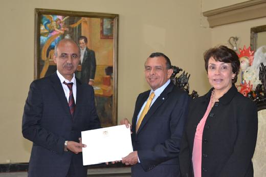 السفير سعدات يقدم أوراق اعتماده سفيرا غير مقيم لدى هندوراس