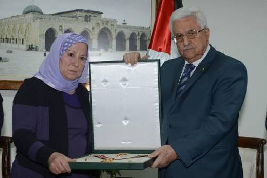 وسلم سيادته، الوسام، مساء اليوم السبت، لأرملة الشهيد زاهرة حبش، في مقر الرئاسة بمدينة رام الله، بحضور أعضاء من اللجنة التنفيذية.