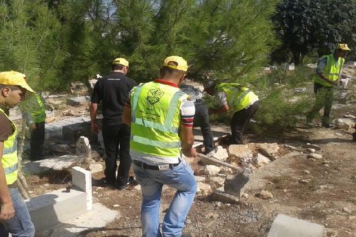 وقد قام العشرات من أبناء حركة فتح وبمشاركة عدد من أهالي المدينة، بأعمال تنظيف واسعة في المقابر ، حيث تم إزالة الأعشاب والحجارة المتراكمة ، وقص الشجر الطويل من المقبرة .