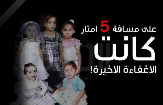 – من مهند العدم - إلى آخر أعمارهم، سيظل الأشقاء محمد و زياد و أحمد حسن فطافطة و زوجاتهم ينوؤون بأحزانهم الثقيلة و بالـ"لو" الحارقة، لا لشيء.. ألّا لأن طفلاتهم الخمس نورسين ونادين و تقى وراما و سارة اللاتي اختطفهن الموت ثالث أيام العيد، كن يختنقن داخل السيارة العائدة لأحدهم على مسافة 5 أمتر فقط منهم...