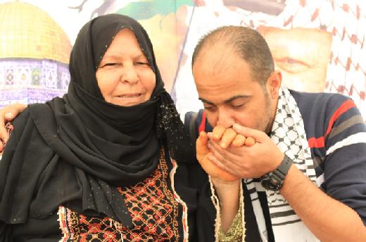 أما والدته التي كان يحتضنها ويُقبِّل يدها بين حين وآخر فأشارت إلى أنها تفاجأت بحضوره، ولم تُصدِّق عينيها حين فتحت الباب لتراه في وجهها، وأردفت "بقيت لدقائق طويلة لا أعرف عددها.. لا أعرف ماذا افعل إلى أن أُغمى علي من حجم هذه الصدمة الجميلة، وقد تمنَّيت من أعماق قلبي هذه الفرحة لجميع أمهات الأسرى بالإفراج العاجل عن أبنائهن".