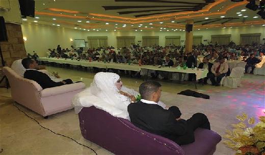 من جهته، قدَّم أمين سر حركة "فتح" وفصائل منظمة التحرير الفلسطينية فتحي أبو العردات هدية رمزية للعرسان وهي عبارة عن 200 دولار لكل عريس.