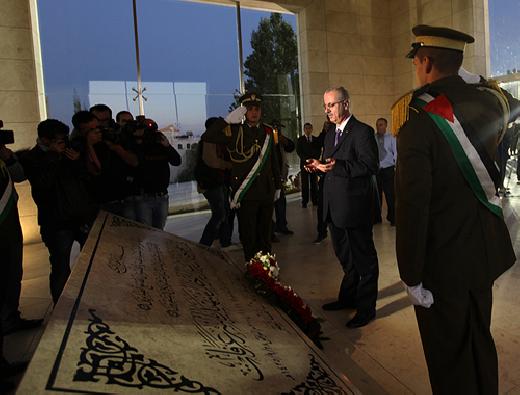 رئيس الوزراء يضع اكليلاً من الزهور، على ضريح الرئيس الشهيد ياسر عرفات