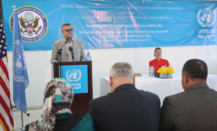 وتطّرق المفوض العام غراندي إلى أهمية المشروع، على اعتبار أن المدرسة تقع داخل المناطق المسماة 'ج'، ما يصعب الحصول على تراخيص بناء أو العيش في تلك المناطق، موضحا أن الولايات المتحدة هي شريك 'للأونروا' في البرنامج التعليمي، وهي الداعم الأكبر لميزانيتها هذا العام.