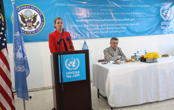 وأضافت كليمنتس، 'وكالة الغوث شريك رئيسي للولايات المتحدة، وأظهرت إخلاصها في التعامل مع اللاجئين الفلسطينيين، وساهمت في تحسين ظروف حياتهم'، مشيرة إلى أن إعادة تأهيل المدرسة التي تأتي ضمن آخر المدارس التي تعمل بنظام الورديات في فلسطين، وإضافة مبنى جديد معاصر وغرف للتدريب المهني ومختبرات علمية تشكل حافزا لتمكين الأطفال في المستقبل'.