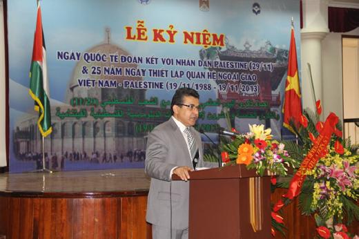 وأضاف أن الانتصارات الفيتنامية ضد التدخل الأجنبي والعدوان تمثل على الدوام رافعة معنوية للشعب الفلسطيني، وتعزز من أيمانه بأن النصر سيكون حليفه في كفاحه المشروع ضد الاحتلال. كما اعرب عن ارتياحه للتطور الذي تشهده العلاقات الفلسطينية في مختلف المجالات.
