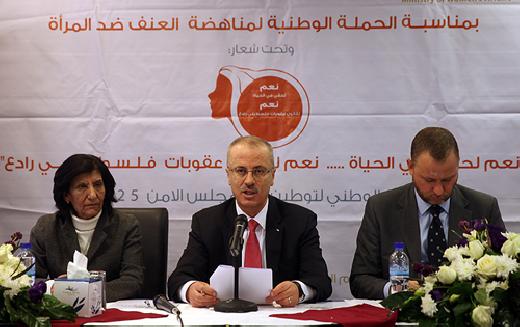 جاء ذلك خلال كلمة ألقاها الحمد الله في الاحتفال بإطلاق المؤتمر الوطني لتوطين القرار الدولي 1325، تزامنا مع الحملة العالمية لمناهضة العنف ضد المرأة، بحضور المفوض السامي لحقوق الإنسان ماتياس بينكه، ووزيرة شؤون المرأة ربيحة ذياب، ومحافظ محافظة رام الله والبيرة ليلى غنام، وعدد من الشخصيات السياسية والاعتبارية.