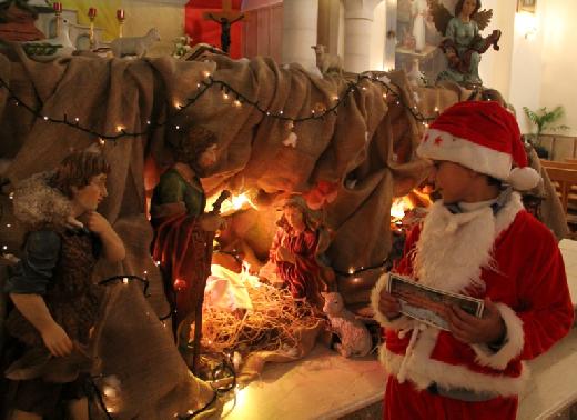 مرتديا زي 'بابا نويل'؛ هذه المرة، وزع خليل كوع الحلوى على الأطفال من كلتا الديانتين، مشيرا إلى أن العديد من أصدقائه يأتون إلى منزله، لتقديم التهنئة له ولعائلته، تماما كما يفعل هو في عيدي الفطر والأضحى، ويضيف: 'نقدم لهم الكعك والحلويات، نقضي أوقاتا جميلة، نحن أخوة تجمعنا الإنسانية'.