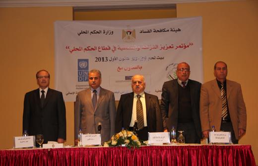انطلقت في بيت لحم اليوم الأحد، فعاليات مؤتمر 'تعزيز النزاهة والشفافية في قطاع الحكم المحلي'، الذي تنظمه هيئة مكافحة الفساد ووزارة الحكم المحلي، بالتعاون مع الاتحاد الفلسطيني والهيئات المحلية، وصندوق تطوير وإقراض البلديات، وبرنامج الأمم المتحدة الإنمائي (UNDP).