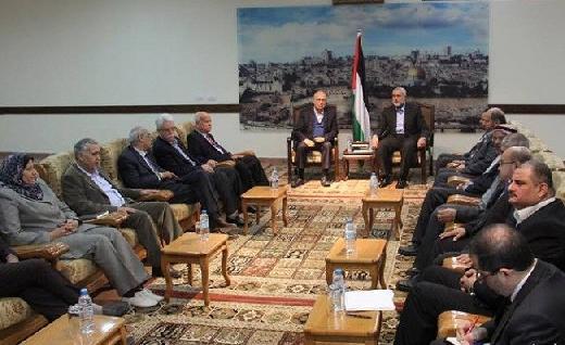جانب من لقاء وفد اللجنة المركزية لحركة فتح مع القيادي الحمساوي إسماعيل هنية بمنزله