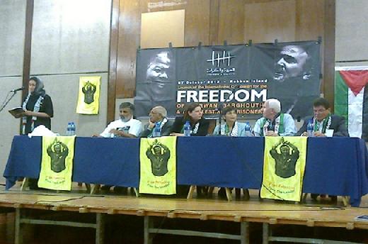 وقال مروان البرغوثي الواقف أمام زنزانة المناضل الكبير المرحوم نيلسون مانديلا خلال إطلاق الحملة الدولية لإطلاق سراحه في جنوب أفريقيا وبحضور شخصيات دولية وأسرى محررين وممثلين عن الأحزاب المختلفة يوم 25/10/2013 : أن روح مانديلا تتفجر في أعماق آلاف الاسرى الفلسطينيين المعتقلين في الزنازين والمعسكرات، يقتربون من خلاله إلى أقصى درجات الحرية، بل أن اسم مانديلا هو الاسم السحري لحتمية انتهاء عهود الاحتلال والاستعمار في العالم.