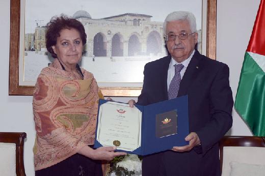 وتسلم الوسام من سيادته، كريمة الفقيد شادية عرنيطة جاسر وأبنائها نصري وأسامة وجمانة، مساء اليوم الاثنين، بمقر الرئاسة في مدينة رام الله، بحضور وزير الثقافة أنور أبو عيشة، وممثلي معهد إدوارد سعيد للموسيقى، ريما طرزي، وإبراهيم عطاري.