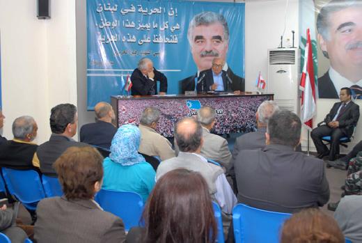 استضافت منسقية تيار المستقبل اللبناني في مدينة صيدا اللبنانية الكاتب والباحث اللبناني الدكتور محمد كشلي، المستشار السابق للرئيس الشهيد رفيق الحريري، في ندوة حوارية في الذكرى السنوية لـ'يوم الأرض'.