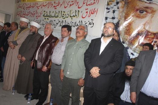 ووقعت المبادرة وسط حشد سياسي فلسطيني لبناني وشعبي كبير، وبحضور السفير الفلسطيني في لبنان اشرف دبور، وامين سر فصائل 'م ت ف' وحركة فتح في لبنان، فتحي ابو العردات، ومسؤول حركة فتح في لبنان على بركة، ومسؤول حركة الجهاد الاسلامي في لبنان ابو عماد الرفاعي.