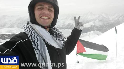 غرس المغامر الفلسطيني محمد القاضي علم فلسطين على إحدى قمم جبال "الألب" في يوم الأرض الفلسطيني.