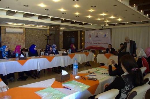 بدورة قال السيد صابر النيرب مسئول حقوق الإنسان في المكتب المفوض السامي لحقوق الإنسان ان البرنامج التدريبي لهذا اليوم يتناول عدد من المحاور أهمها التطور والنشأة ونظام الحماية لمفهوم حقوق الإنسان و صلاحيات والنشأة لمكتب المفوض السامي وتقديم حول تجربة نقابة المحامين في زيارة سجون النساء والعنف المبني على النوع الاجتماعي دراسة حالات وسوف يستهدف التدريب عدد 25 من المحاميات.