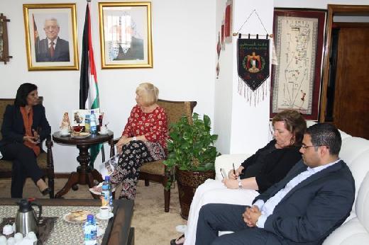 استقبلت وزير شؤون المرأة ربيحة ذياب، اليوم الثلاثاء، رئيسة الحملة الدولية لدعم المرأة ديتا ريغان، لدعم الحملة الدولية تحت شعار 'اتبعوا النساء'، بهدف التضامن مع الشعب الفلسطيني ودعم قضايا وحقوق النساء.