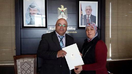سلمت محافظ رام الله والبيرة د. ليلى غنام برقية شكر من فخامة الرئيس محمود عباس لمسؤول جمعية الشبان المسيحية خضر سابا أبو عبارة لمساهمته بتحقيق حلم امرأة غير مقتدرة بأداء فريضة الحج هي وزوجها، وذلك خلال استقبالها له في مقر المحافظة بحضور مسؤولة ملف المساعدات الإنسانية في مكتب الرئيس اللواء رائدة الفارس.