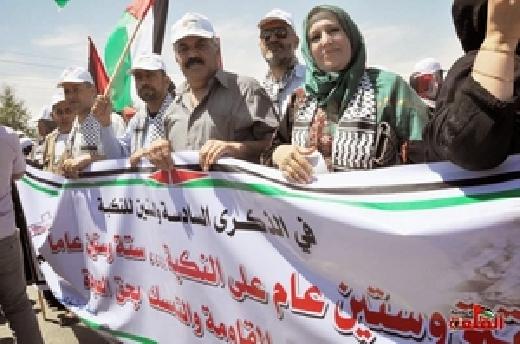 خرجنا اليوم لنؤكد للعالم بأن الشعب الفلسطيني لن يتنازل عن حقه في العودة إلي أراضيه التي هجر منها قصرا .. وقررنا إعادة توجيه البوصلة نحو الاحتلال الإسرائيلي المسؤول الحقيقي عن نكبات و ويلات شعبنا الفلسطيني ونقول بأن الشعب الفلسطيني لن ينسي حقه أبد الدهر .. ونطالب العالم العربي بالتوقف عن الشجب والإستنكار والتحرك الفوري من أجل تحرير مقدساتنا الإسلامية والمسيحية .. وقال حميد : نحن في حركة فتح في هذه الذكري الأليمة وهي ذكري النكبة أل 66 نلتف حول قيادتنا الفلسطينية وعلي رأسها رئيس دولة فلسطين القائد / محمود عباس ( أبومازن ) نحو إنجاز مشروعنا الوطني في قيام دولتنا الفلسطينية المستقلة وعاصمتها القدس الشريف وحل عادل للاجئين الفلسطينين حسب القرار الدولي 194 وهو حق العودة لمدننا وقرانا الفلسطينية التي هجرنا منها قصرا . وكنس المستوطنات من أرضنا الفلسطينية في الضفة الغربية والقدس العاصمة . والإفراج عن جميع أسرانا من السجون الإسرائيلية .. عاشت دولة فلسطين حرة عربية مستقلة .. عاشت نضالات شعبنا من أجل الإستقلال والحرية .. الرحمة لشهدائنا الأبرار .. والحرية لأسرانا البواسل .. والشفاء العاجل لجرحانا ..