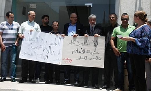 وقال عضو الأمانة العامة لنقابة الصحفيين عمر نزال، إن هذه الفعالية تأتي استنكارا لاقتحام قوات الاحتلال مقر شركة 'ترانس ميديا' في رام الله والخليل، ولتأكيد رفضنا لهذه الانتهاكات التي تصاعدت بحق الإعلاميين منذ الأسبوع الماضي.