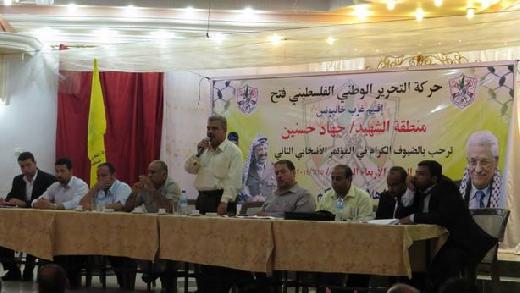- عقدت حركة التحرير الوطني الفلسطيني فتح إقليم غرب خانيونس - منطقة الشهيد "جهاد حسنين" مؤتمرها الإنتخابي الثاني لإنتخاب قيادة منطقة جديدة، بحضور الأخوة/ إبراهيم أبو النجا "أبو وائل" عضو المجلس الثوري لحركة فتح، أمين سر الهيئة القيادية العليا في قطاع غزة، ورئيس لجنة الإشراف العليا بإقليم غرب خانيونس، والدكتور أسامة الفرا محافظ خانيونس ، ونعيم مطر أمين سر إقليم غرب خانيونس، واللواء كامل زعرب"أبو الصامد" نائب رئيس لجنة المتقاعدين العسكريين في المحافظات الجنوبية، والعديد من قيادات وكوادر وأبناء حركة فتح في المنطقة، ووجهاء ومخاتير المحافظة.
