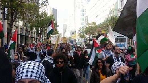 سان فرانسيسكو : تظاهر أمس الاثنين نحو ألفين من أبناء الجالية الفلسطينية والمتضامين الأميركيين أمام القنصلية الإسرائيلية في مدينة سان فرانسيسكو بولاية كاليفورنيا الأميركية إحتجاجا على الجرائم الإسرائيلية وللمطالبة بالحماية الدولية للشعب الفلسطيني من الانتهاكات الإسرائيلية وجرائم قطعان المستوطنين.
