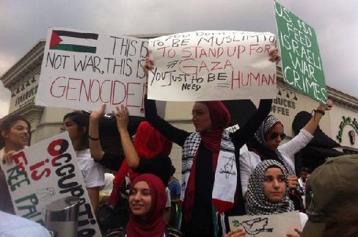 وعلى الرغم من الحر الشديد والرطوبة العالية والصيام تجمهر أكثر 2000 شخص وعلى ثلاثة مفترقات وهم يلوحون بالاعلام الفلسطينية ويحملون اللافتات التي تشجب العدوان مع صور مكبرة لاطفال شهداء ولافتات تؤكد وقوف الجاليه الفلسطينية الى جانب صمود شعبنا في غزة والاراضي الفلسطينية المحتلة، وهتف المتظاهرون وبمكبرات الصوت لغزة ولشهدائها وللمقاومة وقد ردد الجمع الاناشيد الوطنيه الفلسطينية والهتافات التي تحيي المقاومة الوطنيه الباسلة ، ودعت الجماهير المحتشدة المجتمع الدولي التدخل فورا لوقف القصف الوحشي لطائرات العدو ضد مدينة غزة والتي اكد فيها الكيان الصهيوني العنصري انه كيان جريمه بامتياز.