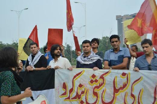 بالتعاون مع حزب عوامي العمالي ، شارك الاتحاد العام لطلبة فلسطين – فرع باكستان في مظاهرة امام نادي الصحافة في العاصمة الباكستانية اسلام اباد وذلك للتنديد بالمجازر الاسرائيلية بحق الشعب الفلسطيني الأعزل وخصوصا ما يتعرض له أهلنا في قطاع غزه من عدوان همجي وغاشم اسفر حتي الان على استشهاد اكثر من 1050 شهيد وألالاف الجحي وتدمير البيوت على ساكنيها .