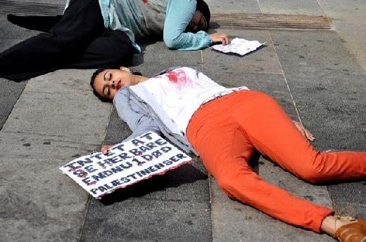 أورهوس - وليد ظاهر - بادر اتحاد الجمعيات الفلسطينية والاسلامية في مدينة أورهوس يوم السبت 2-8-2014 إلى تنظيم محاكاة مشهد .. الشهداء بغزة في وسط مدينة أورهوس ورفع يافطات كتب عليها عدد الشهداء، وشعارات إكرامًا لروح الشهداء الذين ارتقوا للعلا في العدوان الاسرائيلي الغاشم على غزة وتأكيدًا على أن الشهداء ليسوا مجرد أرقامًا بل هم تفاصيل وقصصًا وأحلامًا قتلتها اسرائيل.