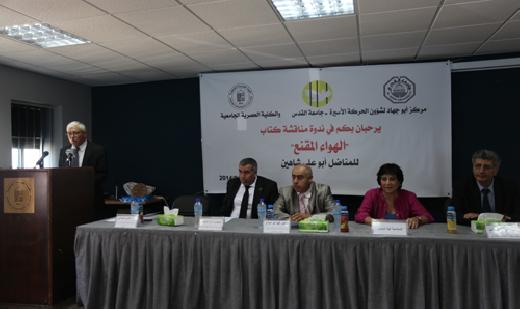 ناقش عدد من الكتاب والمثقفين والاسرى المحررين في ندوة خاصة نظمها مركز ابو جهاد لشؤون الحركة الاسيرة بالتعاون مع الكلية العصرية الجامعية اليوم السبت، كتاب 'الهواء المقنع' الذي تناول حياة الراحل الوطني والمناضل أبو علي شاهين.