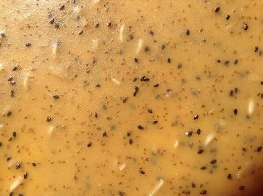 وفي المرحلة الثانية تعمل زوجته أم محمد على إزالة الرغوة والشوائب الطائشة عن سطح القدر الساخن ووضعها في كيس من الخيش إلى أن يصفى بعض العصير أيضا من كل الشوائب، وينقل العصير الصافي والمنقى والمسمى 'الراووق' إلى قدر آخر من أجل غليه، وبعد الغلي يتعاون الزوجان في إضافة السميد بالتدريج، فيما يستمر أبو جميل في التحريك دون توقف إلى أن يثقل المزيج وينضج، وفي هذه المرحلة يضاف القريش (عبارة عن بذور متوسطة الحجم تكون في جلمود شجر الصنوبر ولونه أسود)، إلى الطبخة كزينة، ويمكن إضافة الينسون، أو المكسرات حسب الرغبة.