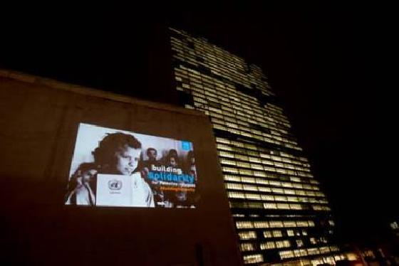 عرضت وكالة غوث وتشغيل اللاجئين الفلسطينيين 'الأونروا'، صورة ضخمة من أرشيفها، لإحدى طالبات الأونروا تعود لعام 1983، على بنايات في ثماني مدن عالمية، وذلك في إطار الاحتفالات بالسنة الدولية لتضامن الأمم المتحدة مع الشعب الفلسطيني.