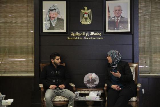 جاء ذلك خلال استقبال المحافظ للفنان الفلسطيني هيثم خلايلة بمكتبها اليوم وتسليمها بصمة فلسطين له، لدوره في ترك بصمة متميزة في قلب ووجدان كل من سمعه يشدو بأنغام التحدي والمجد والأمل الفلسطيني.